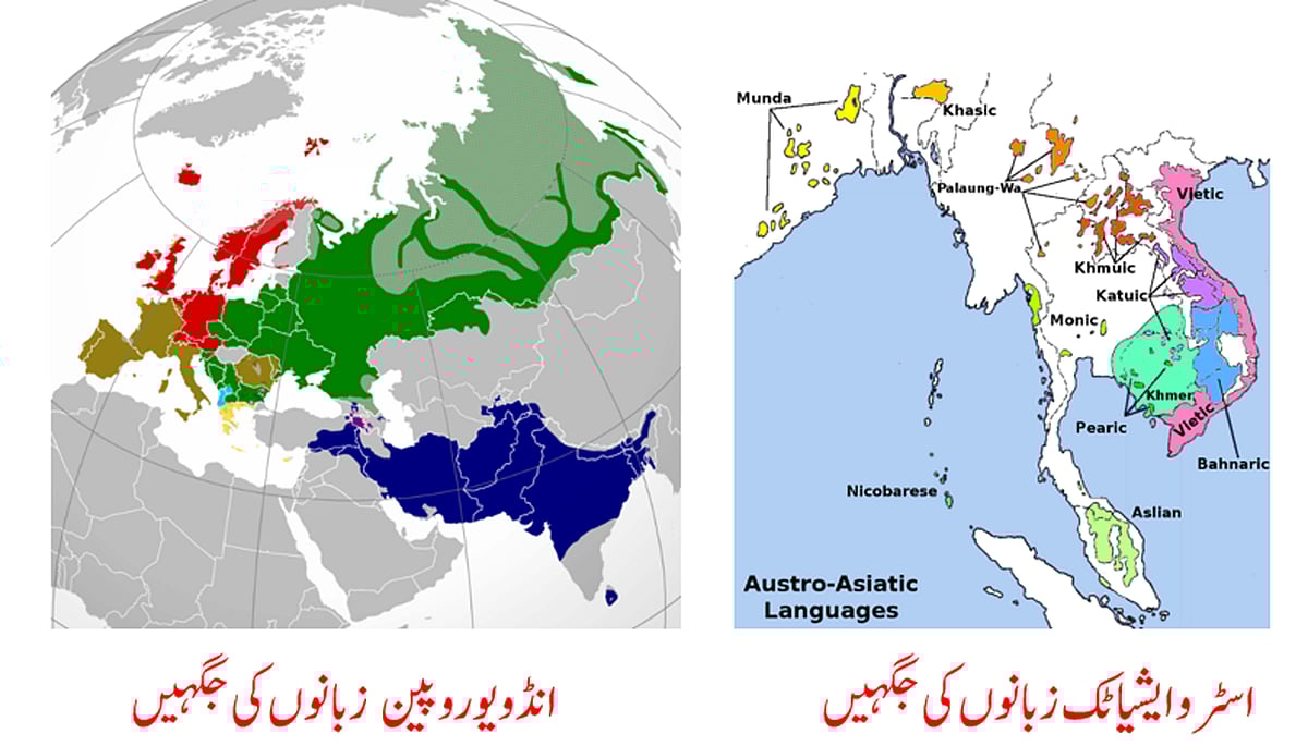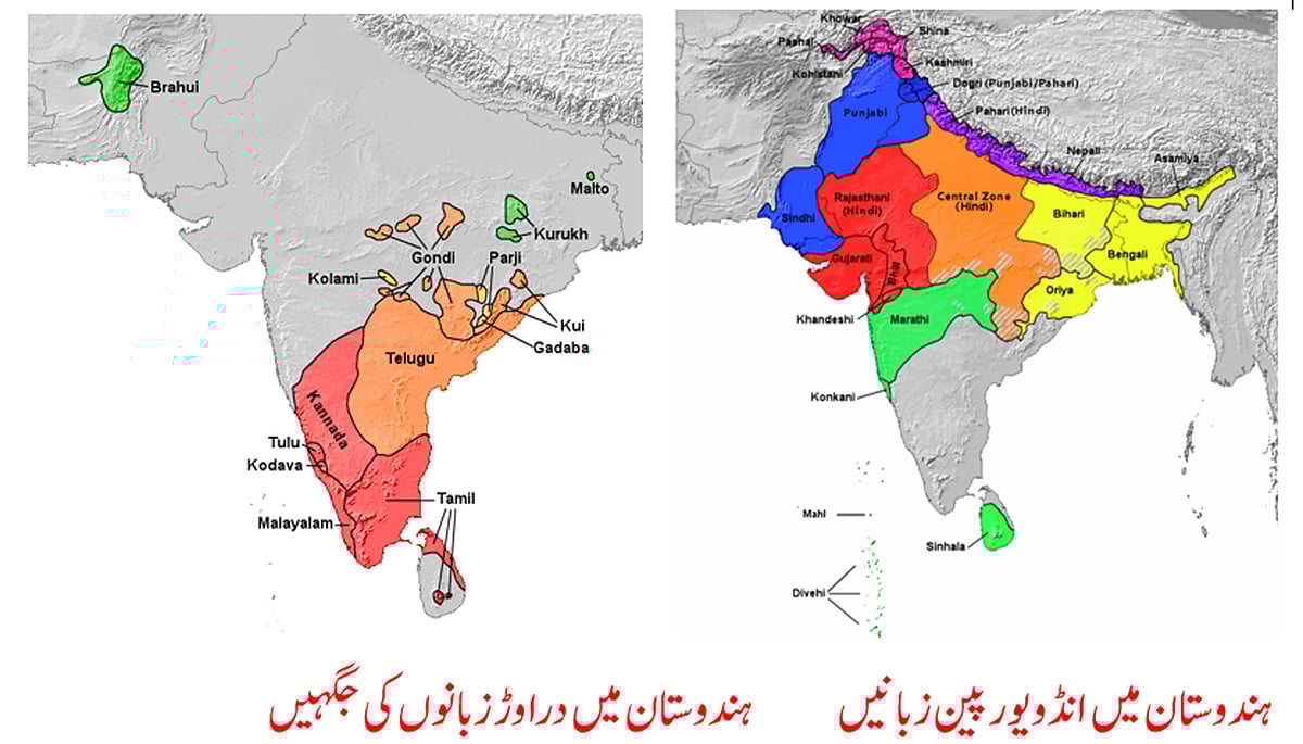 دوسری: ہندوستان میں استعمال ہونے والی زبانیں (ہندی، اردو، بنگالی، بھوجپوری، مراٹھی، پنجابی، کشمیری، راجستھانی، سندھی اسامیا، میتھلی اور اوڑیہ) انڈو یورپین خاندان سے ہیں جو آبادی کے تین چوتھائی لوگ بولتے ہیں۔ انڈو یورپین زبانیں ایشیا سے یورپ پہلی ہوئی ہیں۔